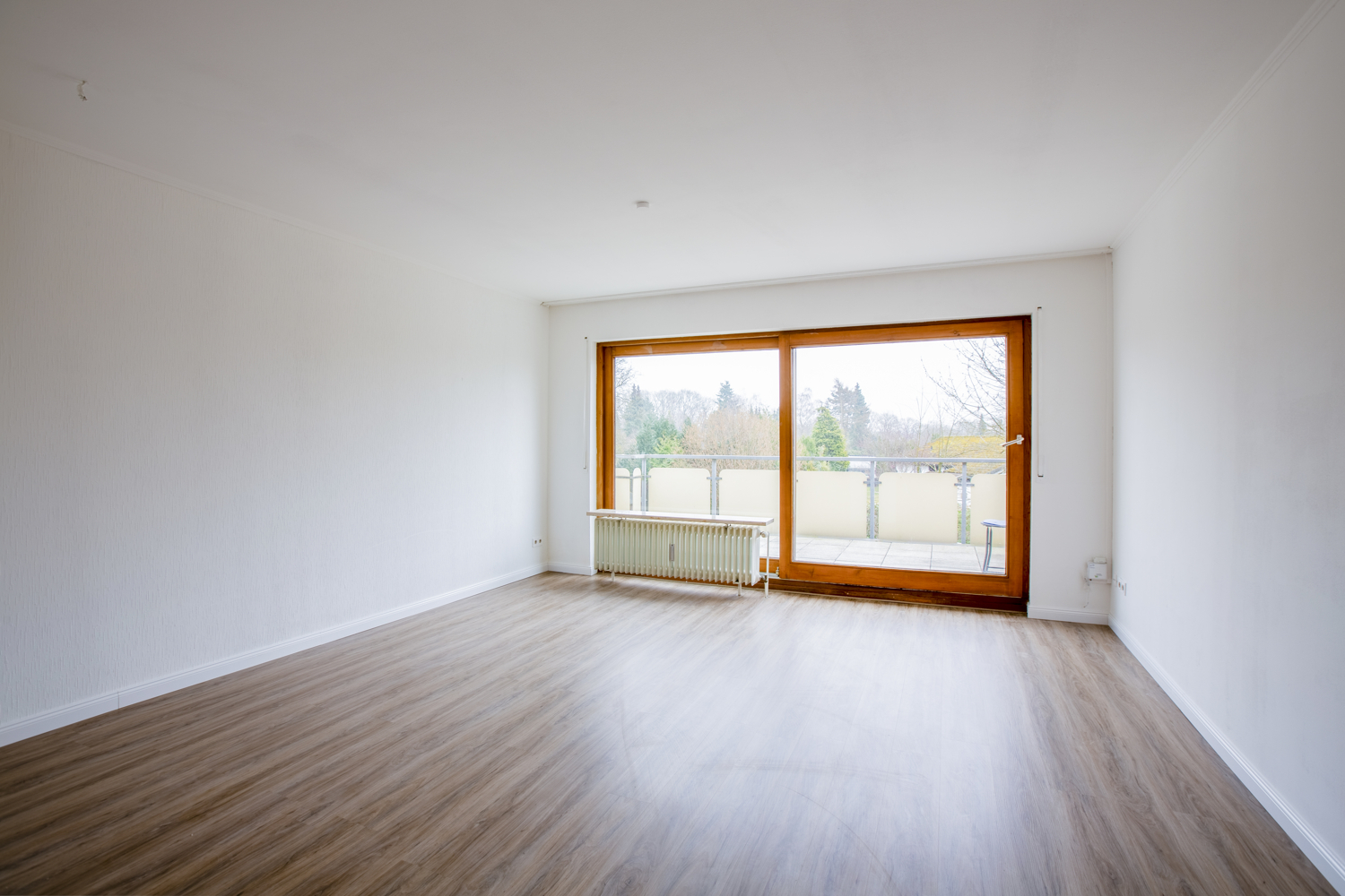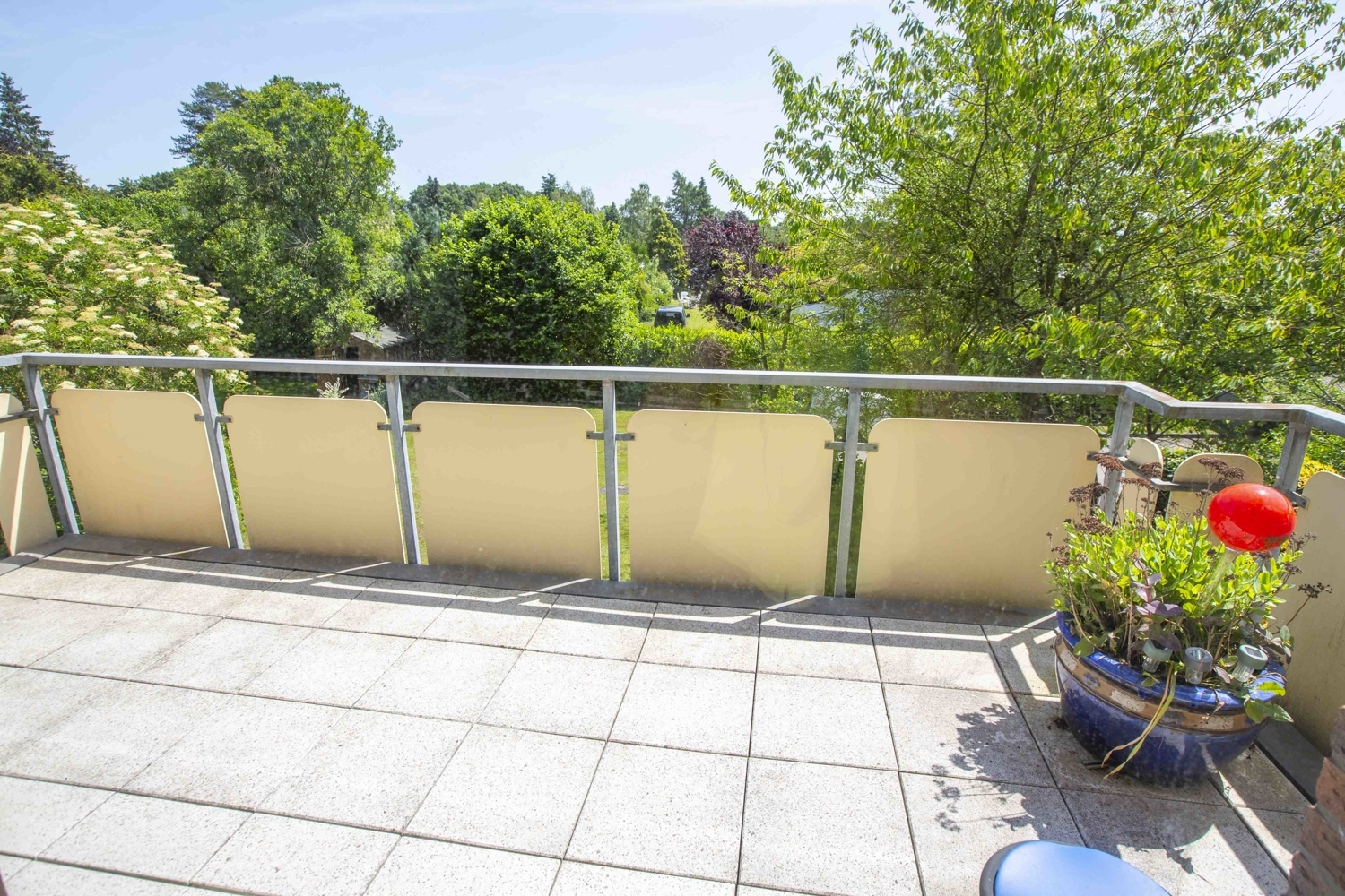 Vom Wohnzimmer aus lädt Sie der große Balkon zum Entspannen ein. Hier können Sie die Sonne genießen.