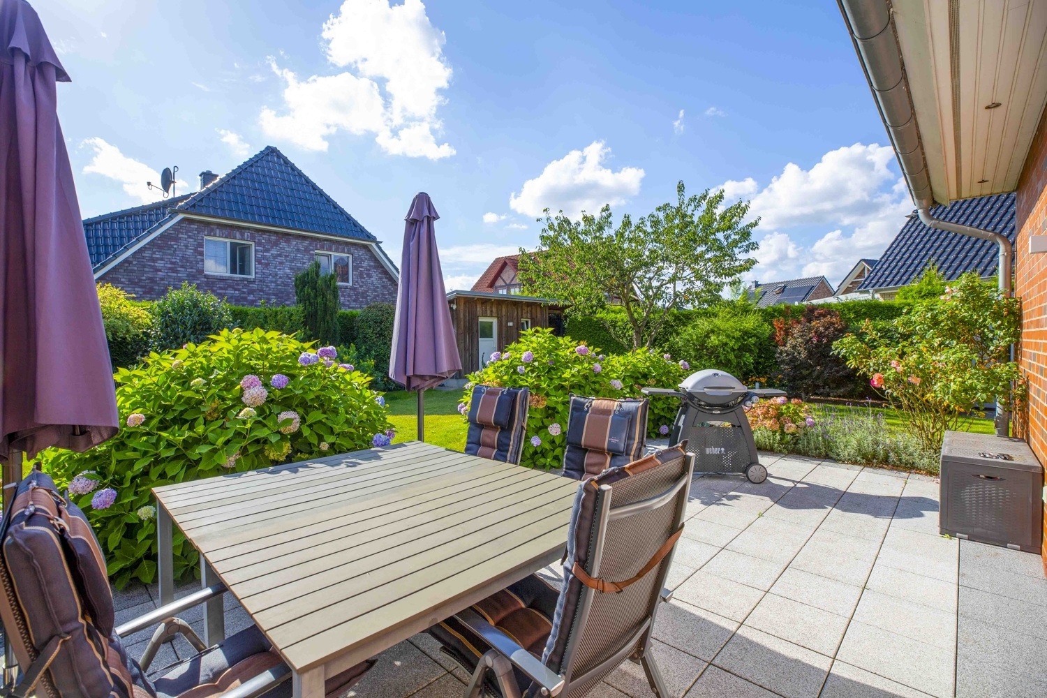 Strahlendes Highlight: die großzügige Sonnenterrasse! Hier empfangen Sie Ihre Gäste zu entspannten Grillabenden im Sommer.