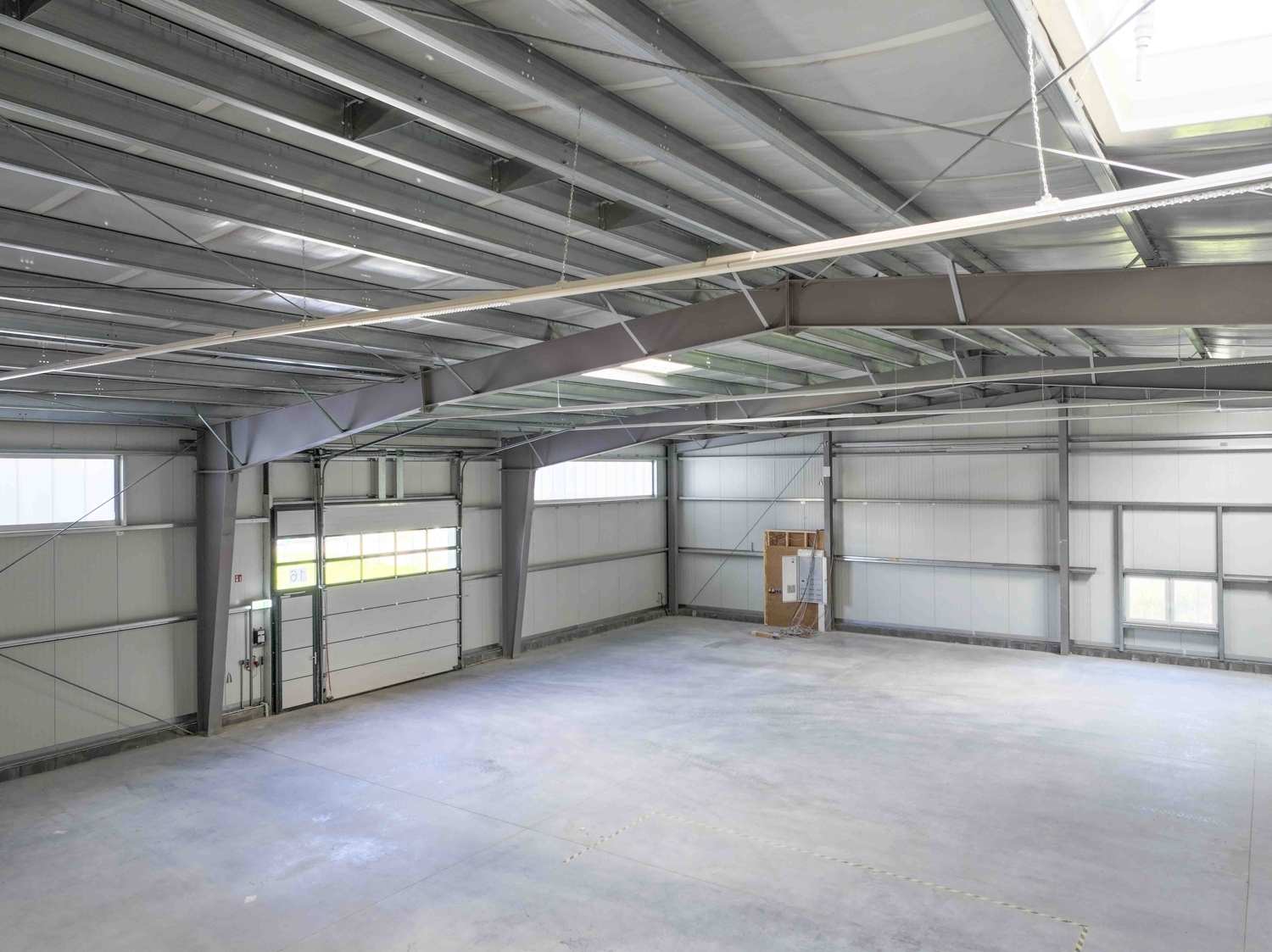 Direkt angrenzend gelangen Sie in die Halle, die derzeit als Lager genutzt wird. Über drei große Rolltore können Waren bequem be- und entladen werden.
